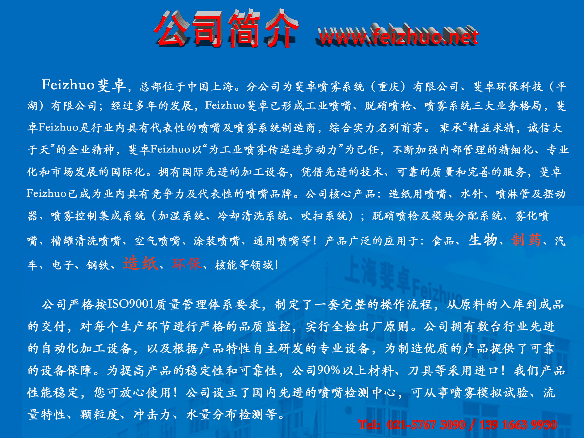 | 上一條:上一篇:spray扇形噴嘴_lechler噴嘴-上海Feizhuo斐卓 | 下一條:下一篇:金屬精細(xì)霧化噴嘴-Feizhuo斐卓 |