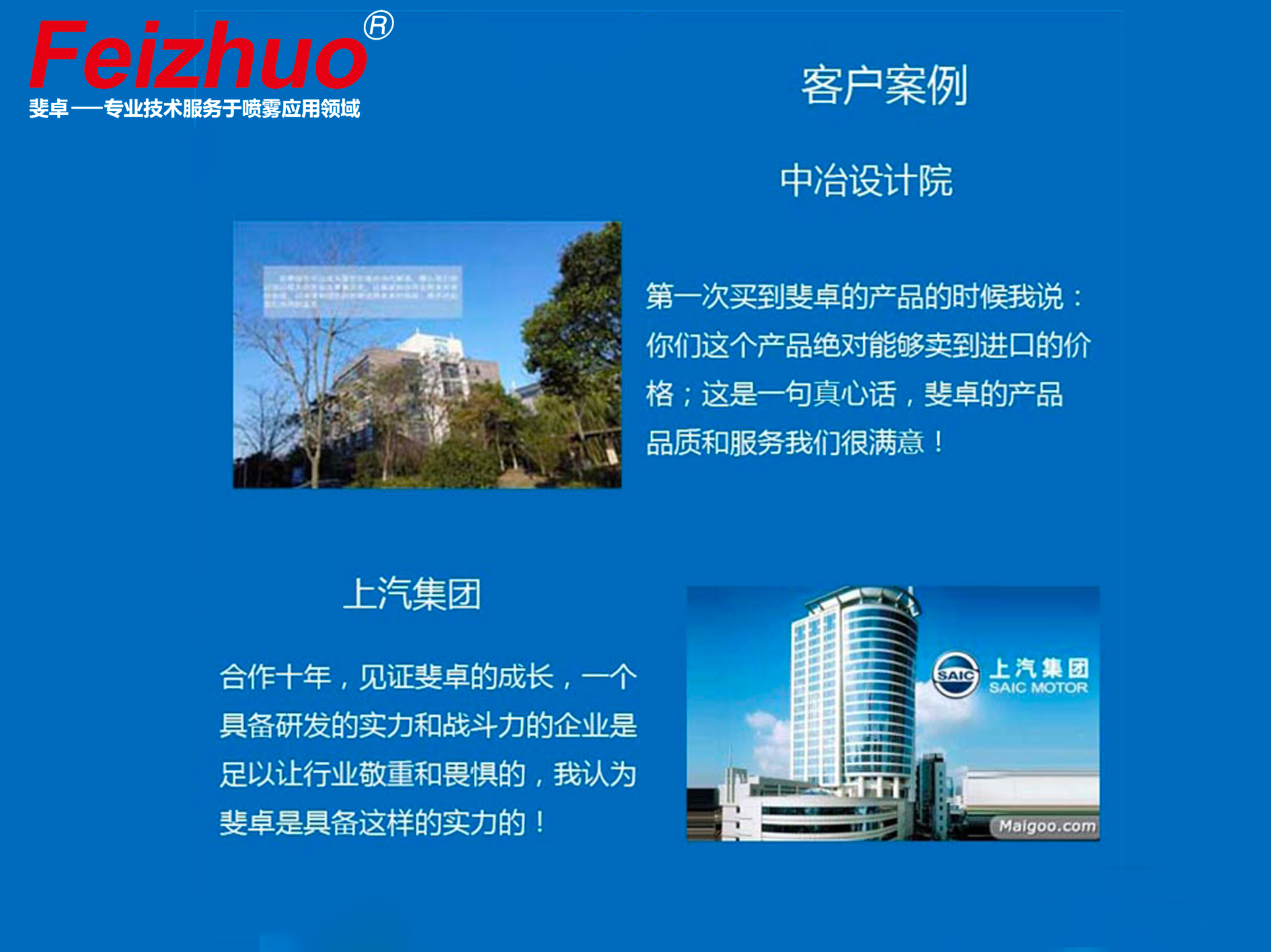 | 上一條:上一篇:金屬精細(xì)霧化噴嘴-Feizhuo斐卓 | 下一條:下一篇:工業(yè)噴嘴廠家高端實(shí)驗(yàn)室-上海斐卓Feizhuo |