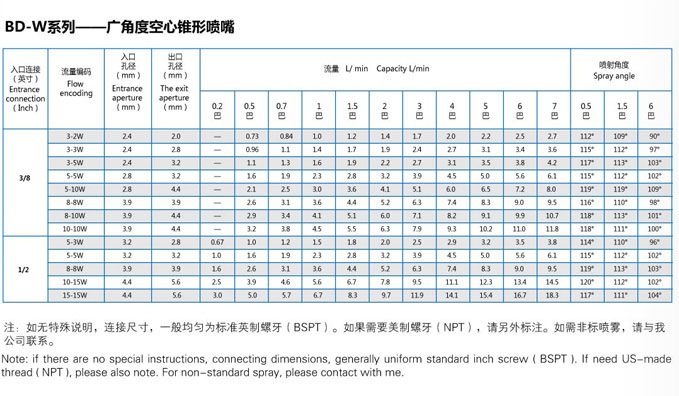BD系列噴嘴有標(biāo)準(zhǔn)角度和廣角度之分。