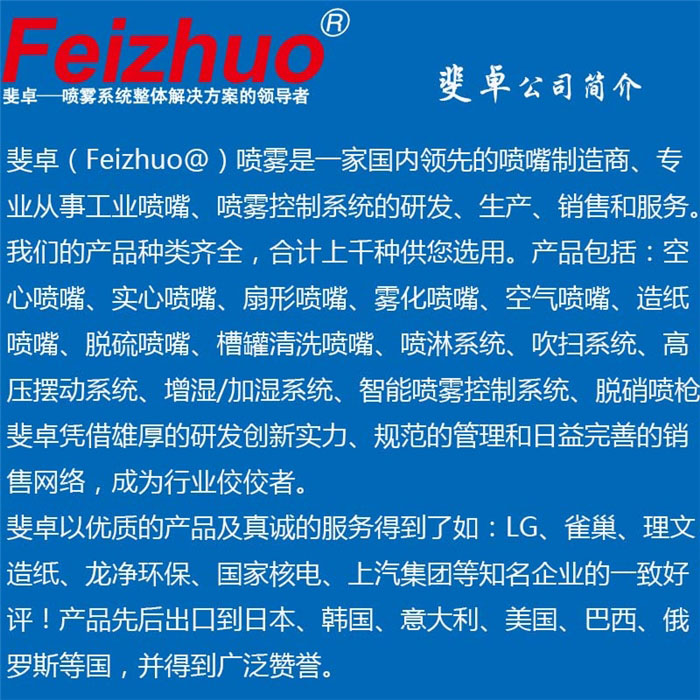 脫硝噴槍的更多選型資料及詳細(xì)信息,請(qǐng)您聯(lián)系上海斐卓噴霧系統(tǒng)公司索取!